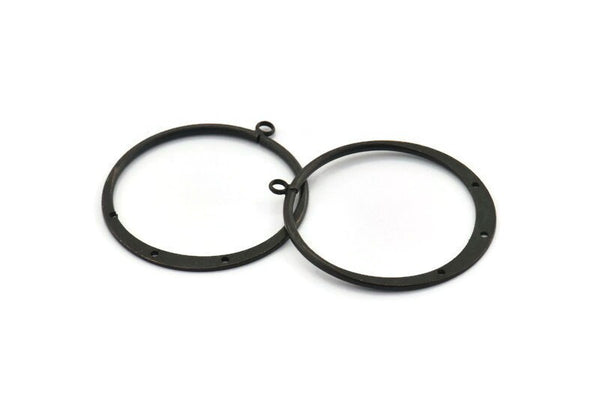 1 Döngü ve 3 Delikli Oksitlenmiş Siyah Pirinç Yuvarlak Küpe Tılsımları