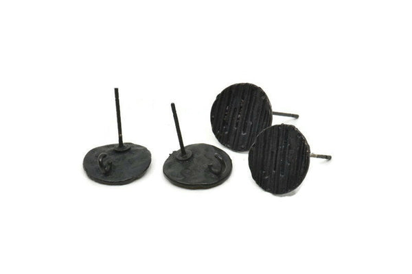 Siyah Yuvarlak Küpe, 4 Oksitlenmiş Siyah Pirinç Yuvarlak Küpe Saplaması (13 mm) N1173