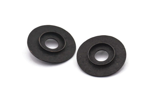 15 mm Taş Tabanlı Oksitlenmiş Siyah Pirinç Çekiçle İşlenmiş Yuvarlak Kolye