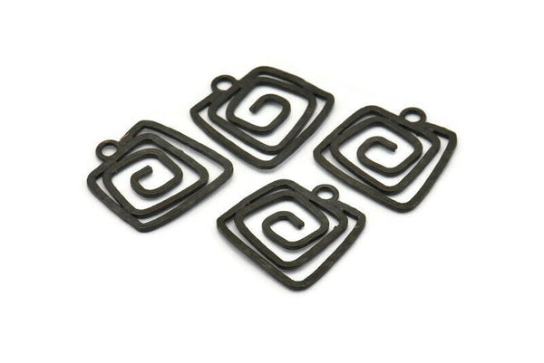 Siyah Kare Charm, 4 Çekiçlenmiş Oksitlenmiş Pirinç Siyah Kare Charm, 1 Döngü, Küpeler, Kolye Uçları (23x22x1mm) V147