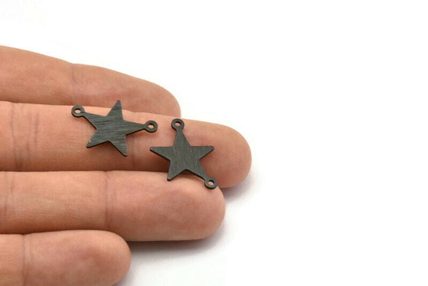 2 Halkalı Dokulu Oksitlenmiş Siyah Pirinç Yıldız Takılar