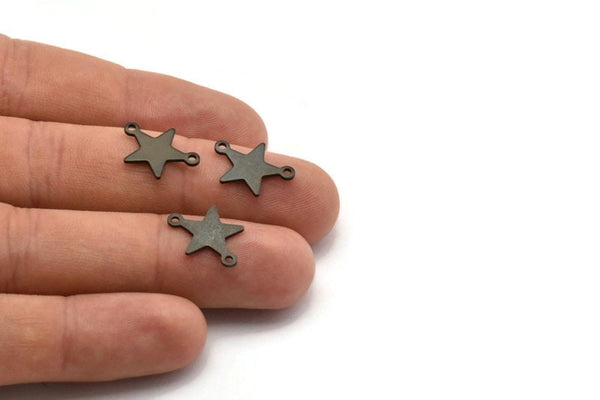 2 Halkalı Oksitlenmiş Siyah Pirinç Yıldız Takılar