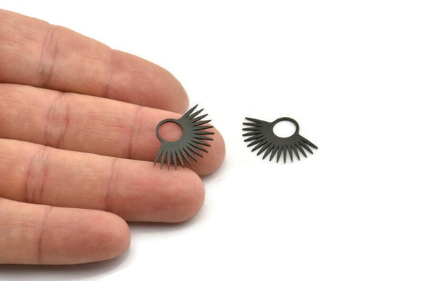 Siyah Güneş Tılsımı, 12 Oksitlenmiş Siyah Pirinç Güneş Tılsımı, Kolye Uçları, Bulgular (23x15x0,60 mm) A3876