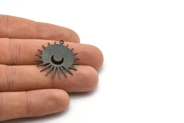 1 Döngülü Oksitlenmiş Siyah Pirinç Güneş ve Hilal Takılar