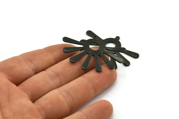 Siyah Güneş Tılsımı, 1 Halkalı 4 Oksitlenmiş Siyah Pirinç Güneş Kolye, Bulgular (44x32x0,80 mm) A1475