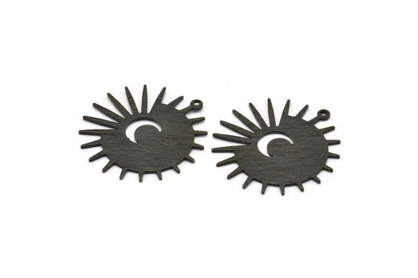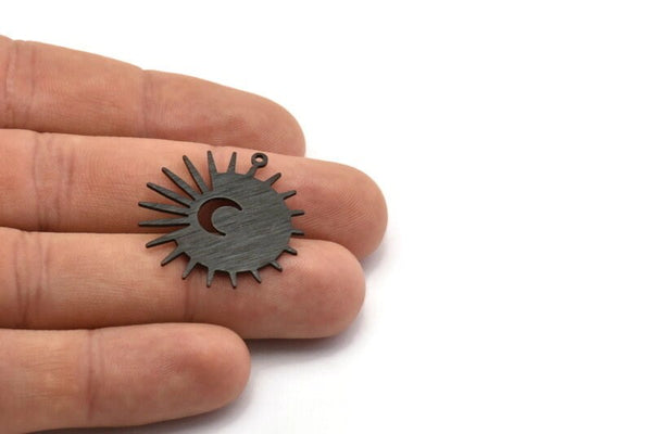 1 Döngülü Dokulu Oksitlenmiş Siyah Pirinç Güneş ve Hilal Takılar