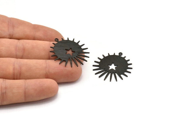 1 Döngülü Dokulu Oksitlenmiş Siyah Pirinç Güneş ve Yıldız Takıları