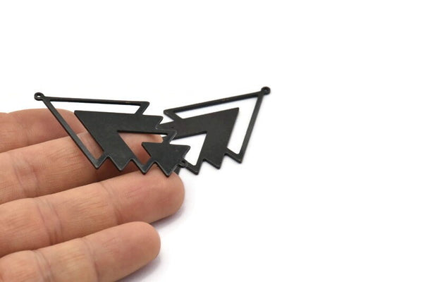 Siyah Üçgen Tılsımı, 2 Döngülü 2 Oksitlenmiş Siyah Pirinç Ağaç Tılsımı (51x33x1mm) M01219 H1288