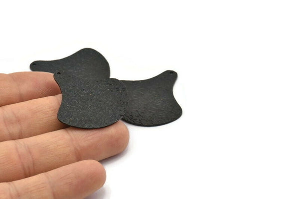 1 Delikli Oksitlenmiş Siyah Pirinç Çekiçle İşlenmiş Geometrik Kolye Uçları