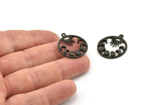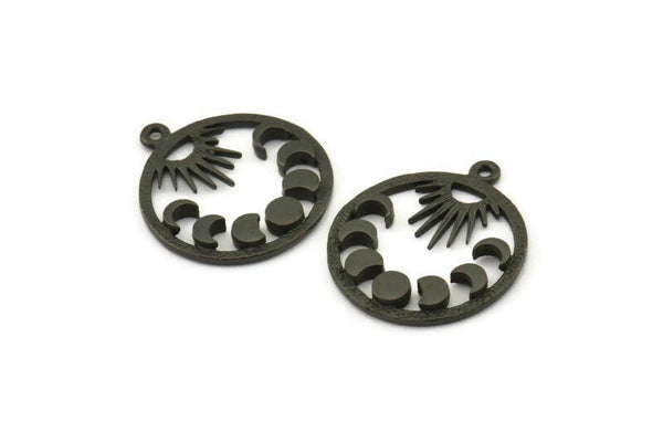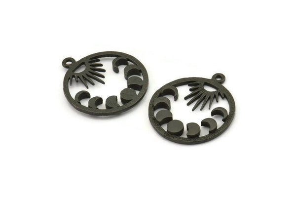 Ay Evreleri Tılsımı, 2 Oksitlenmiş Siyah Pirinç Hilal Evreleri Tılsımı, 1 Halka, Kolye Uçları, Bulgular (25x22x2,2 mm) N1633