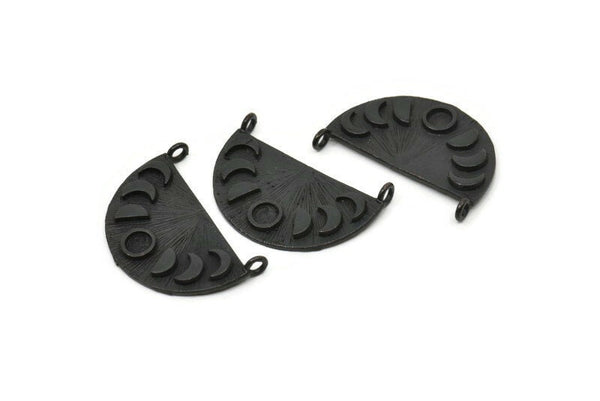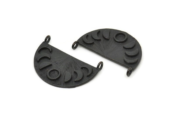 Ay Evreleri Kolye, 2 Oksitlenmiş Siyah Pirinç Ay Evreleri Tılsımı, 2 Halka, Bulgular - Ped Boyutu 4 mm (28x16x1 mm) N1225