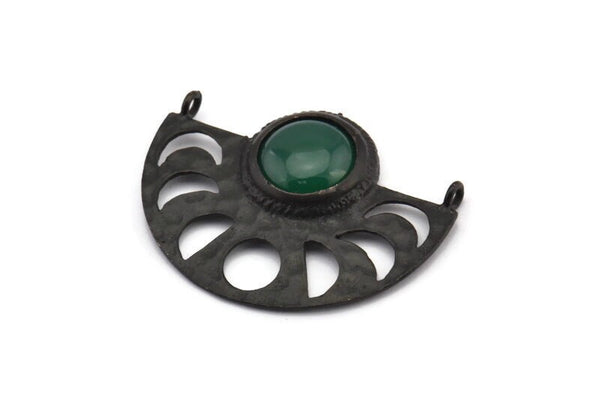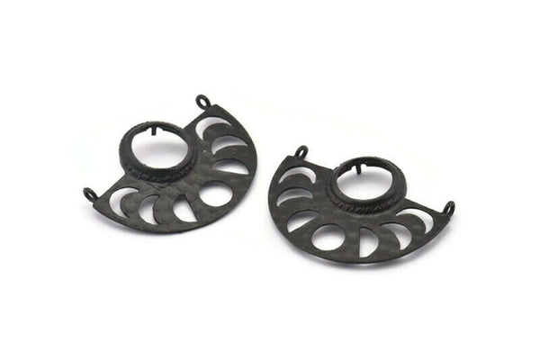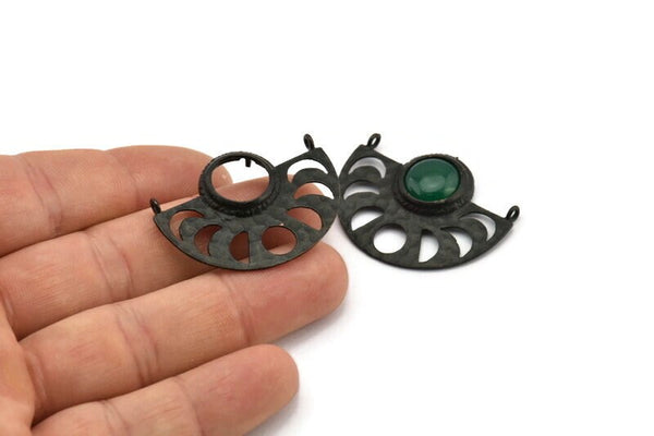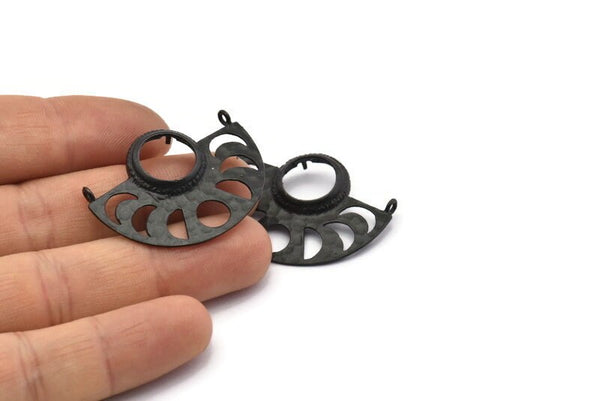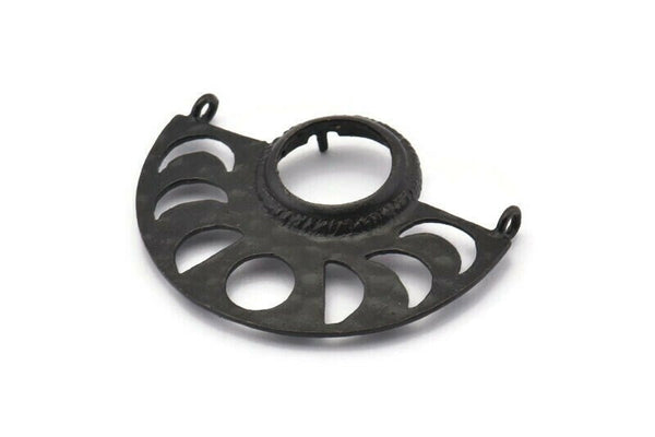 2 Döngü ve 1 Ped Ayarlı Oksitlenmiş Siyah Pirinç Yarım Daire Kolye
