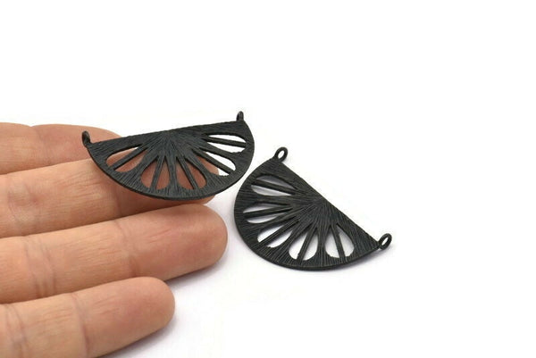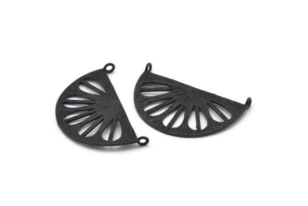 Retro Yaprak Kolye, 2 Oksitlenmiş Siyah Pirinç Yarım Daire Kolye, 2 Döngü (38x22x1mm) BS 1946