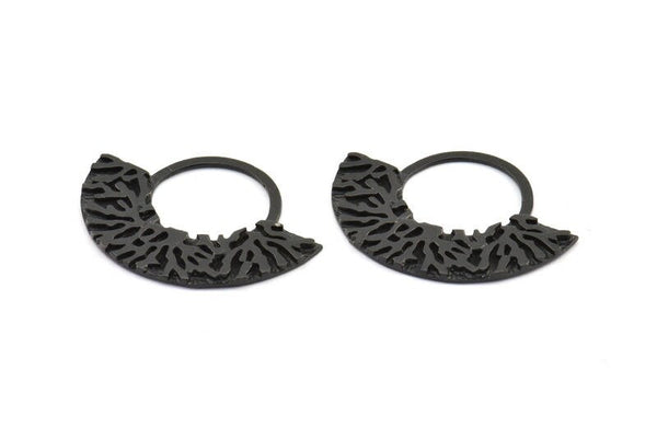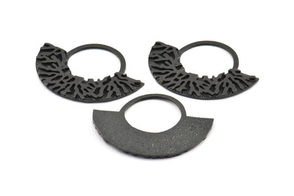 Yarım Daire Kolye, 2 Oksitlenmiş Pirinç Siyah Yarım Daire Kolye (49x36x2x1mm) U090 S442