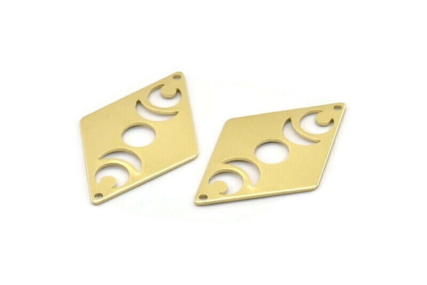 2 Delikli, Eşkenar Dörtgen Boşluklu Ham Pirinç Ay Takıları