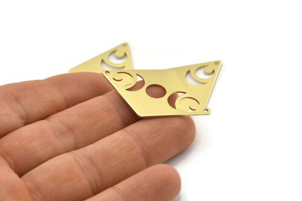 Pirinç Elmas Tılsım, 2 Delikli 6 Ham Pirinç Ay Tılsımı, Eşkenar Dörtgen Boşluklar (40x26x0,80 mm) M01666
