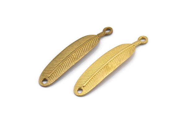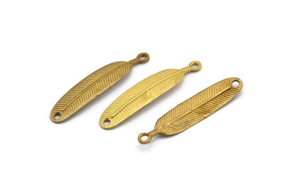 Pirinç Amazon Yaprakları, 4 Ham Pirinç Yaprak Bağlantı Tılsımı, 2 Delikli Kabile Kolye Uçları (43x9,5 mm) N0370