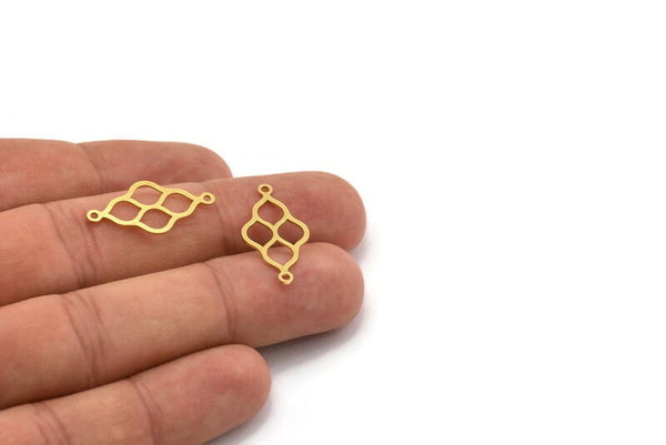 Pirinç Etnik Charm, 2 Döngülü 50 Ham Pirinç Etnik Motifli Charm, Küpe Charm'ları, Bağlantı Parçaları (24x12,5x0,60 mm) A4896