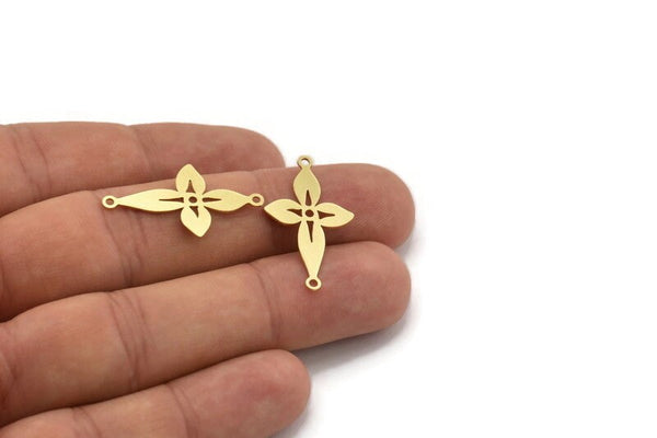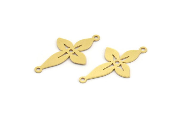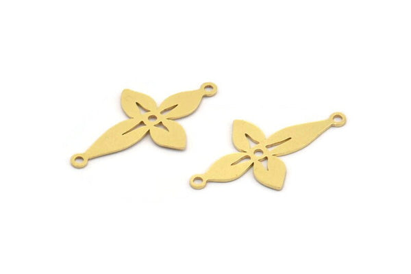 Pirinç Çiçek Tılsımı, 2 Döngülü 12 Ham Pirinç Çiçek Şeklinde Tılsım, Bağlantı Parçaları (29,5x17x0,60 mm) A5082