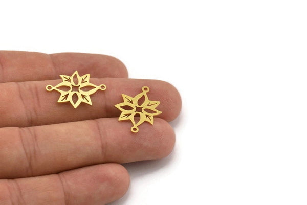 Pirinç Çiçek Tılsımı, 2 Döngülü 24 Ham Pirinç Çiçek Tılsımı, Çiçek Bağlantı Parçaları (22x16x0,60 mm) A4549