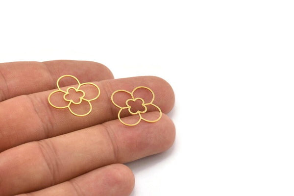 Pirinç Çiçek Tılsımı, 50 Ham Pirinç Çiçek Tılsımı, Tılsım Kolye Uçları, Bağlantı Parçaları (21,5x18x0,60 mm) A5015