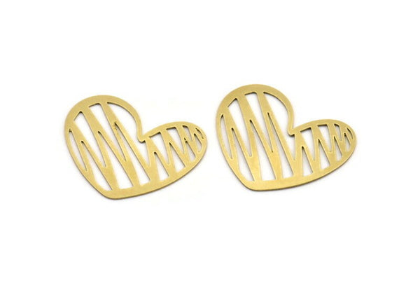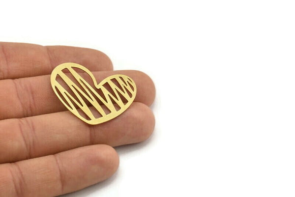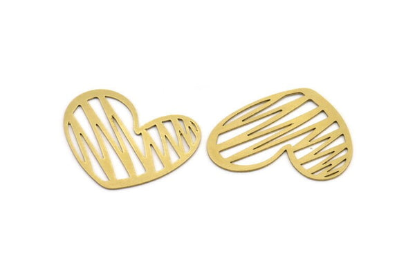 Pirinç Kalp Tılsımı, 6 Ham Pirinç Kalp Bağlantı Parçası, Bulgular (30x36x0,60 mm) A3266