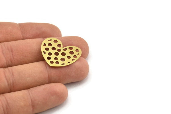 Pirinç Kalp Tılsımı, 8 Ham Pirinç Kalp Bağlantı Parçası, Bulgular (24x27x0,60 mm) A3269