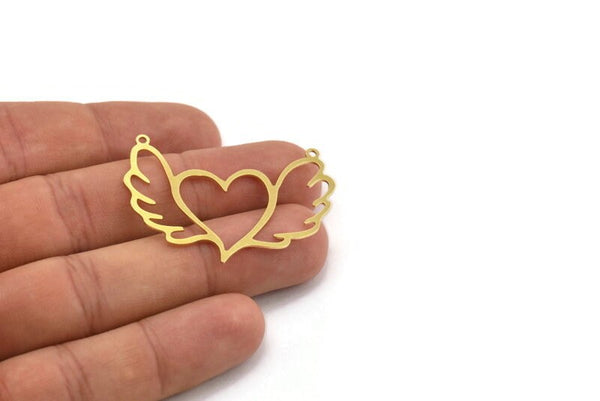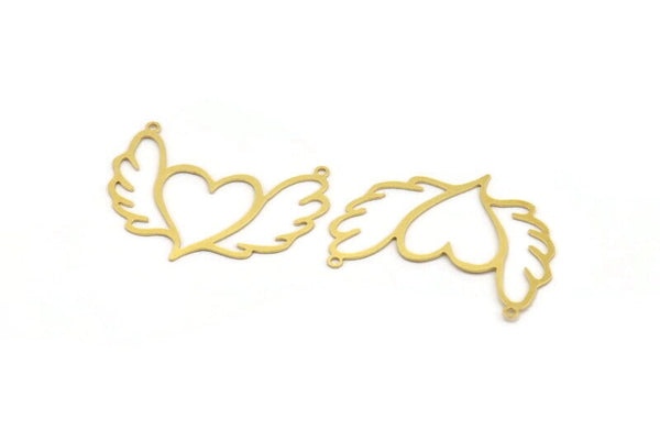 Pirinç Kalp Charm, 2 Döngülü 8 Ham Pirinç Kalp Şeklinde Charm, Bulgular, Kolye Uçları, Kolye Bağlantı Parçaları (32x45x0,60 mm) A5192