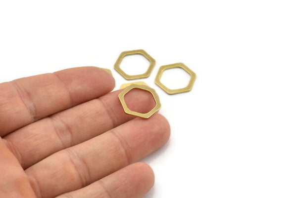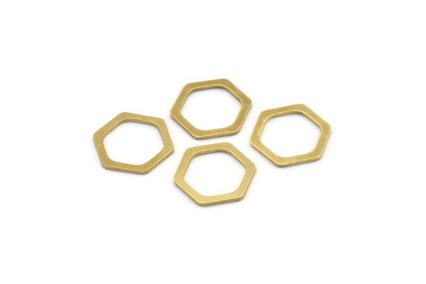 Pirinç Altıgen Charm, 12 Ham Pirinç Altıgen Şekilli Halka, Bağlantı Parçaları (18x16x1mm) A4043