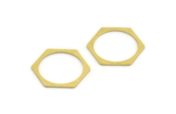 Pirinç Altıgen Charm, 12 Ham Pirinç Altıgen Şekilli Halka, Bağlantı Parçaları (23x21x1mm) A6151