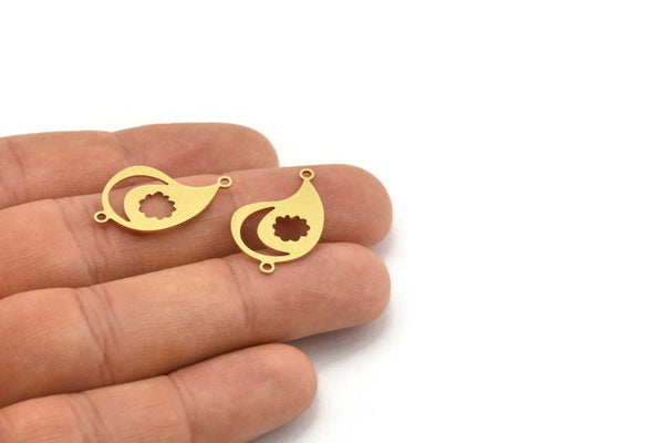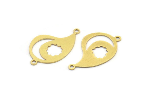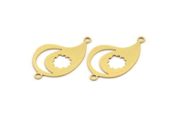 Pirinç Düzensiz Tılsım, 2 Döngülü, Bağlantı Parçalı 12 Ham Pirinç Hilal ve Bulut Desenli Düzensiz Şekilli Tılsım (26x16x0,60 mm) A3483