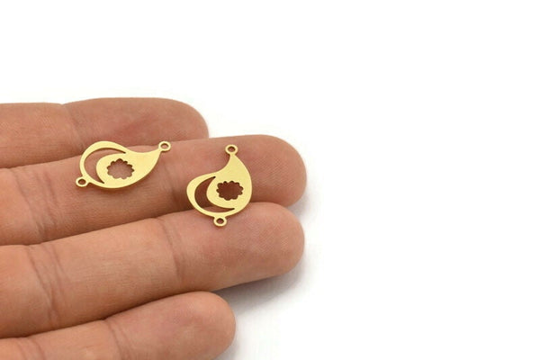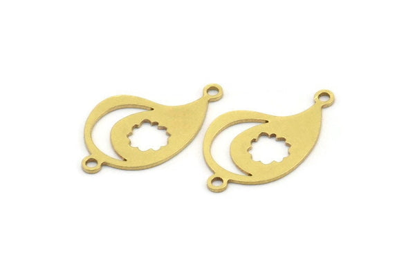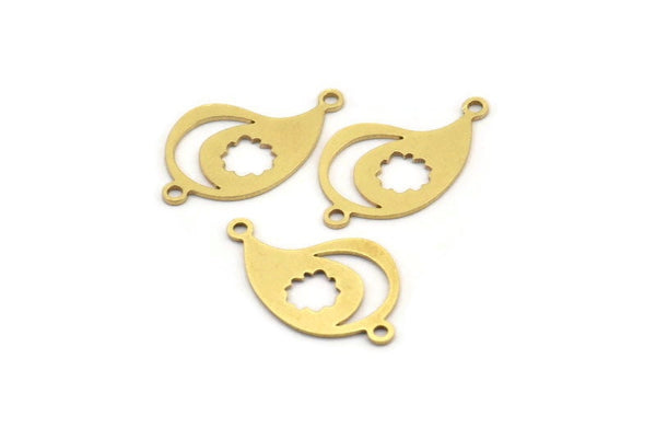 Pirinç Düzensiz Tılsım, 2 Döngülü, Bağlantı Parçalı 24 Ham Pirinç Hilal ve Bulut Desenli Düzensiz Şekilli Tılsım (22x13x0,60 mm) A3481