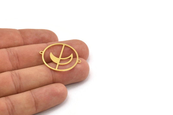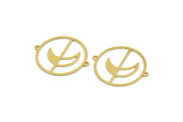 Pirinç Yuvarlak Charm, 2 Döngülü 12 Ham Pirinç Hilal Desenli Yuvarlak Şekilli Charm, Charm Kolye Uçları, Bağlantı Parçaları (30x26x0,60 mm) A5208