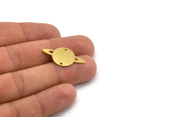 Pirinç Satürn Tılsımı, 2 Delikli 10 Ham Pirinç Satürn Şekilli Tılsım, Kolye Uçları, Gezegen Parçaları, Bağlantı Parçaları (15x29x0,60 mm) A5154