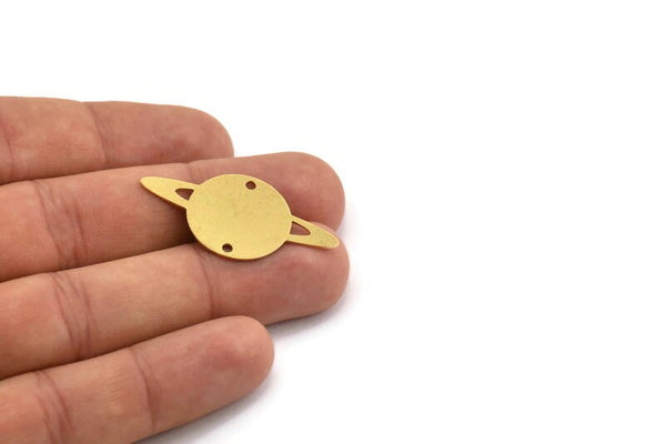 Pirinç Satürn Tılsımı, 2 Delikli 6 Ham Pirinç Satürn Şekilli Tılsım, Kolye Uçları, Gezegen Parçaları, Bağlantı Parçaları (20x39x0,60 mm) A5150