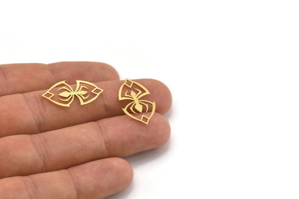 Pirinç Örümcek Tılsımı, 2 Döngülü 24 Ham Pirinç Örümcek Şekilli Tılsım, Bağlantı Parçaları (25x14x0,60 mm) A4308