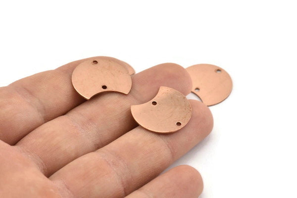 Bakır Ay Tılsımı, 2 Delikli 12 Ham Bakır Hilal Ay Tılsımı, Bağlantı Parçaları (20x15x0,70 mm) M608
