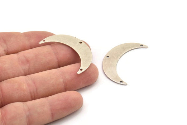 3 Delikli Antik Gümüş Kaplama Pirinç Hilal Ay Takıları