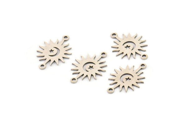 2 Halkalı Antik Gümüş Kaplama Pirinç Hilal Ay Takıları