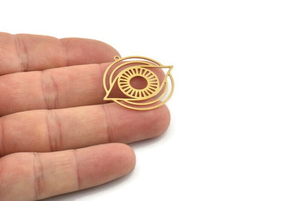 Pirinç Göz Tılsımı, 1 Halkalı 4 Ham Pirinç Göz Tılsımı, Tılsım Küpeleri (32x29x0,60 mm) SMP1225