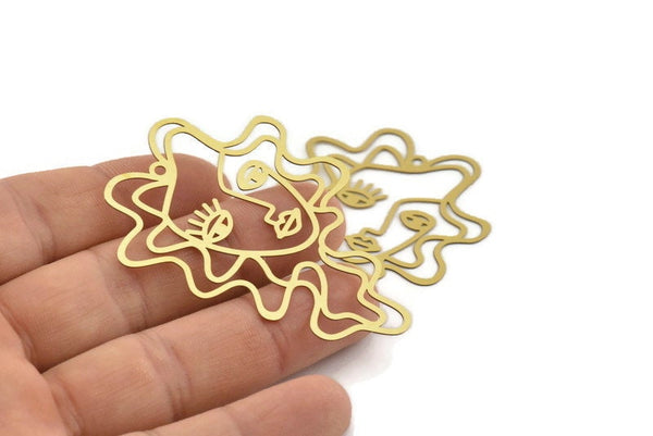 Pirinç Yüz Tılsımı, 1 Delikli 6 Ham Pirinç Kız Yüz Tılsımı, Bulgular (59x43x0.40mm) D1687