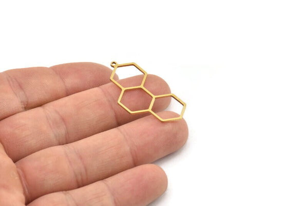 Pirinç Altıgen Tılsım, 1 Halkalı 6 Ham Pirinç Altıgen Tılsım, Tılsım Küpeleri (35x18x0,80 mm) SMP1216