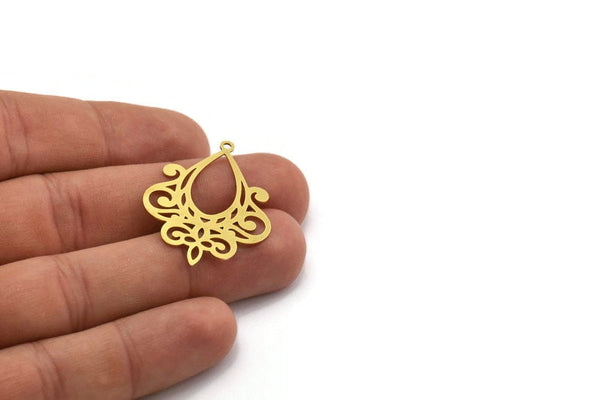 Pirinç Damla Tılsımı, 1 Halkalı 6 Ham Pirinç Damla Tılsımı, Küpe Parçaları (37,5x28x0,60 mm) A5685