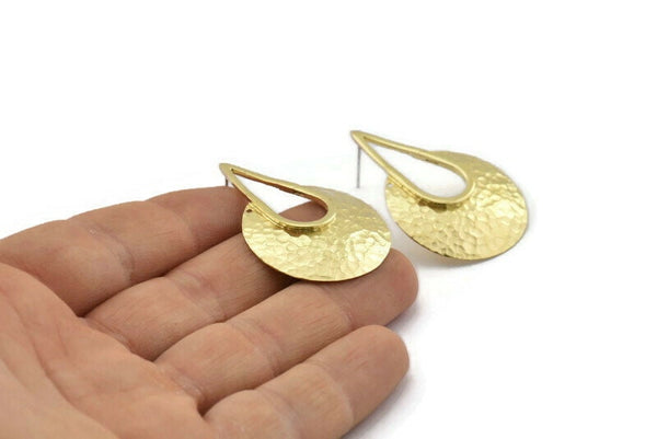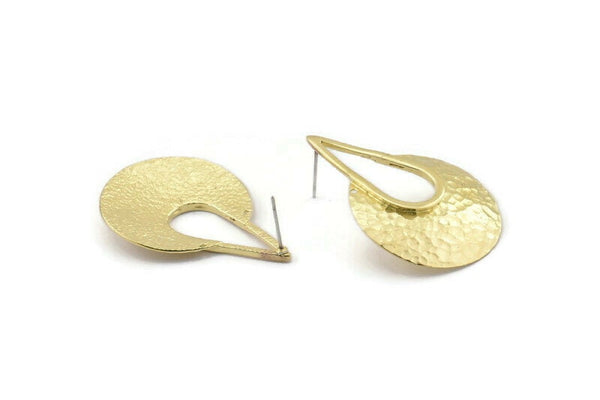 Pirinç Damla Küpe, 2 Çekiçlenmiş Ham Pirinç Damla Küpe (41x28x0,6 mm) U079 A1807