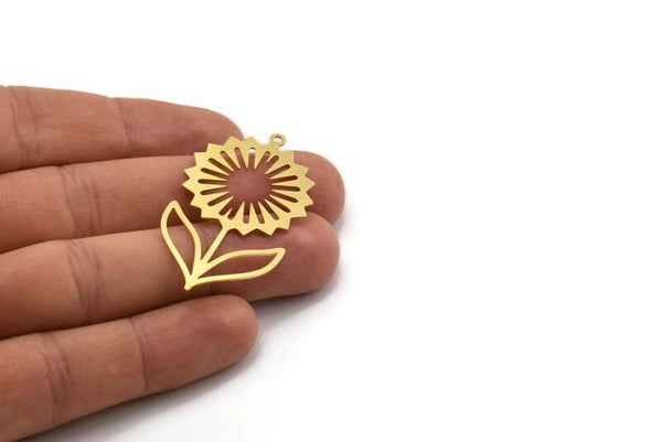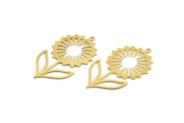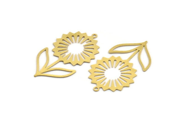 Pirinç Çiçek Tılsımı, 1 Halkalı 6 Ham Pirinç Ayçiçeği Şekilli Tılsım, Küpe Tılsımları (48x26x0,60 mm) A4922