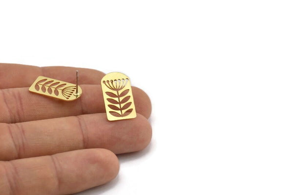 Pirinç Çiçek Küpe, 10 Ham Pirinç Çiçek Şeklinde Küpe (20x12x0,60 mm) A2915