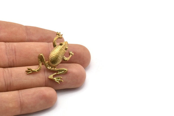 Pirinç Kurbağa Küpe, 2 Ham Pirinç Kurbağa Küpe, Bulgular (39x26x5mm) SY0071