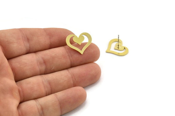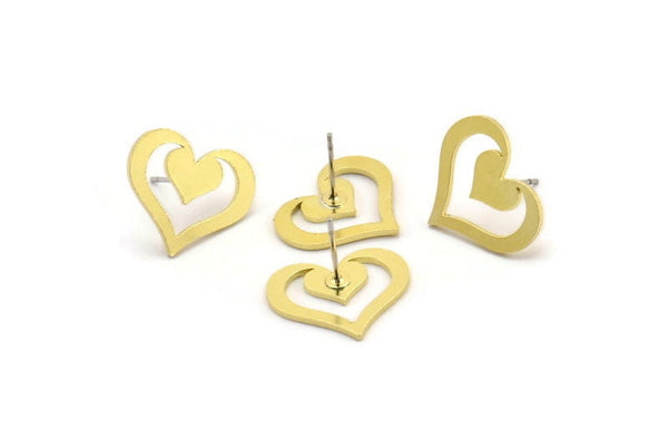 Pirinç Kalp Küpe, 8 Ham Pirinç Kalp Küpe (15x19x1mm) A3745