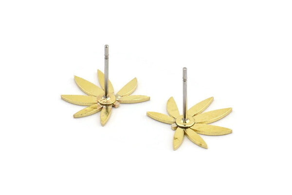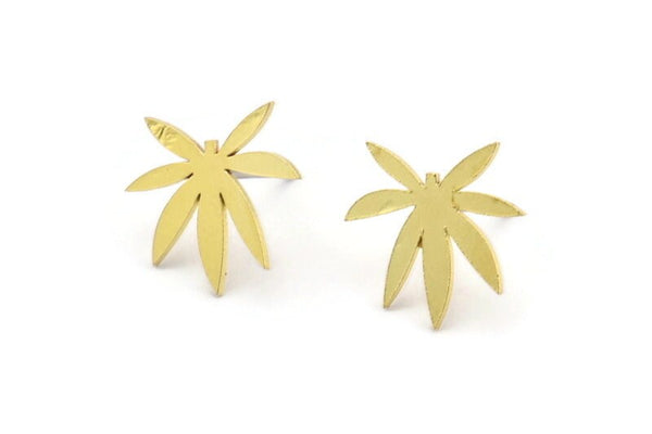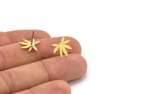 Pirinç Yaprak Küpe, 10 Ham Pirinç Yaprak Şeklinde Küpe, Bulgular (13x14x0,60 mm) A3015