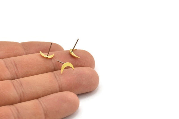 Pirinç Ay Küpe, 12 Ham Pirinç Küçük Hilal Şekilli Küpe (6x2x0,60 mm) A3385